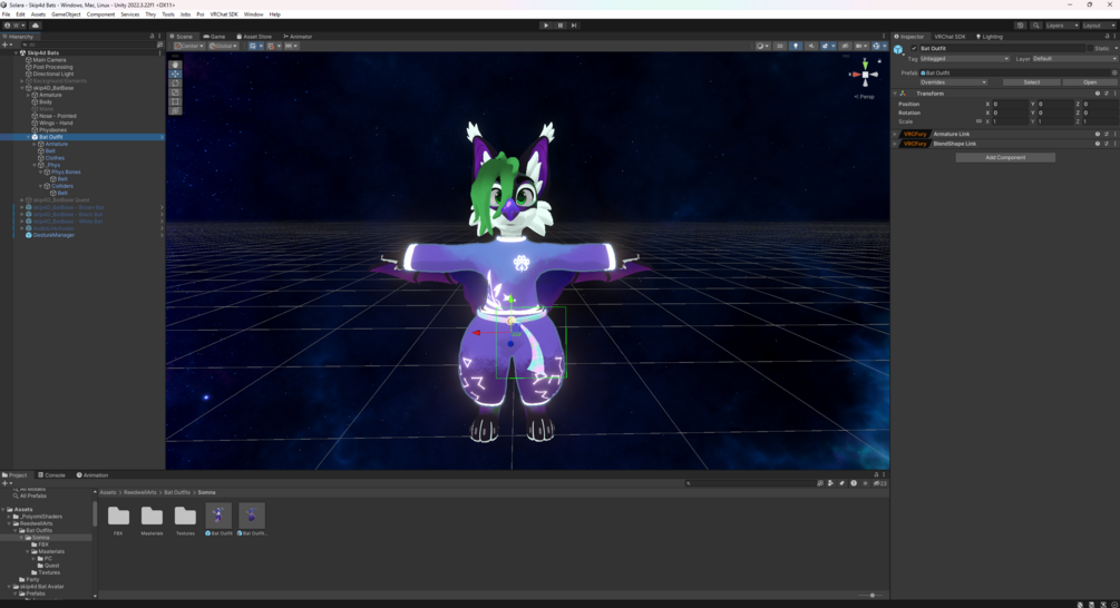 A Customizable Furality Somna Outfit for Skip4D's Bat Avatar (NOW WITH SOMNA SHADER MATERIALS!!!)